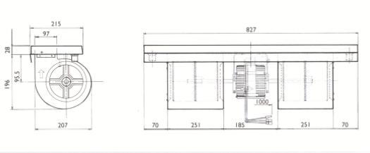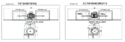 Укомплекті з 3, 4 або 6 швидкісним двигуном та відцентровим вентилятором діапазонів до 510м3
