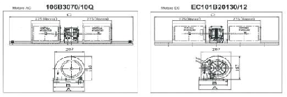 Укомплекті з двигуном швидкості 3, 4 або 6 та відцентровим вентилятором для діапазонів до 1550м3/год