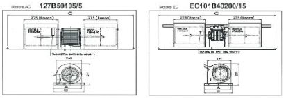 Укомплекті з двигуном швидкості 3, 4 або 6 та відцентровим вентилятором для діапазонів до 5250м3/год