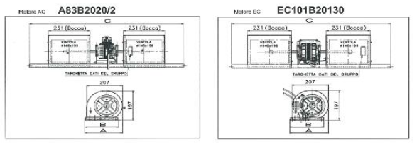 Укомплекті з 3, 4 або 6 швидкісним двигуном та відцентровим вентилятором для діапазонів до 1300м3/год
